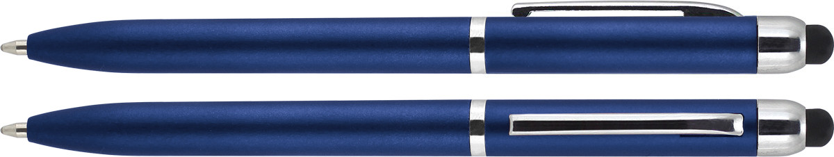 Plastové kuličkové pero s kovovým klipem a gumou pro ovládání dotykových displejů
