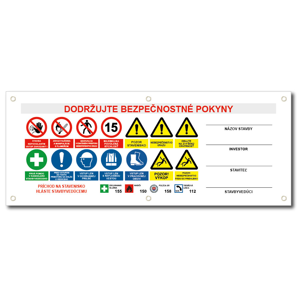 Bezpečnostný banner doplníme Vašim logom a podľa priania Vám doplníme aj osobné údaje (stavbyvedúci, investor atď.).