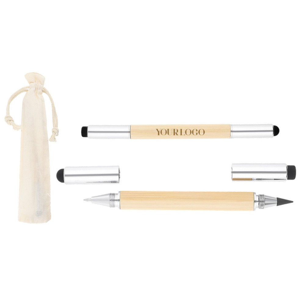 Bambusové multifunkčné pero Dignity v plátennom obale kombinujúce funkcie grafitovej ceruzky eternal,