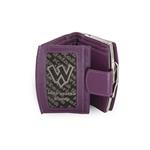Fialová dámska kožená rámová peňaženka so zápinkou