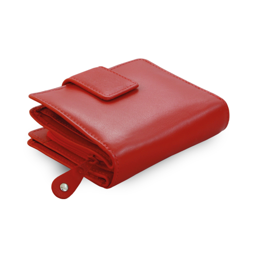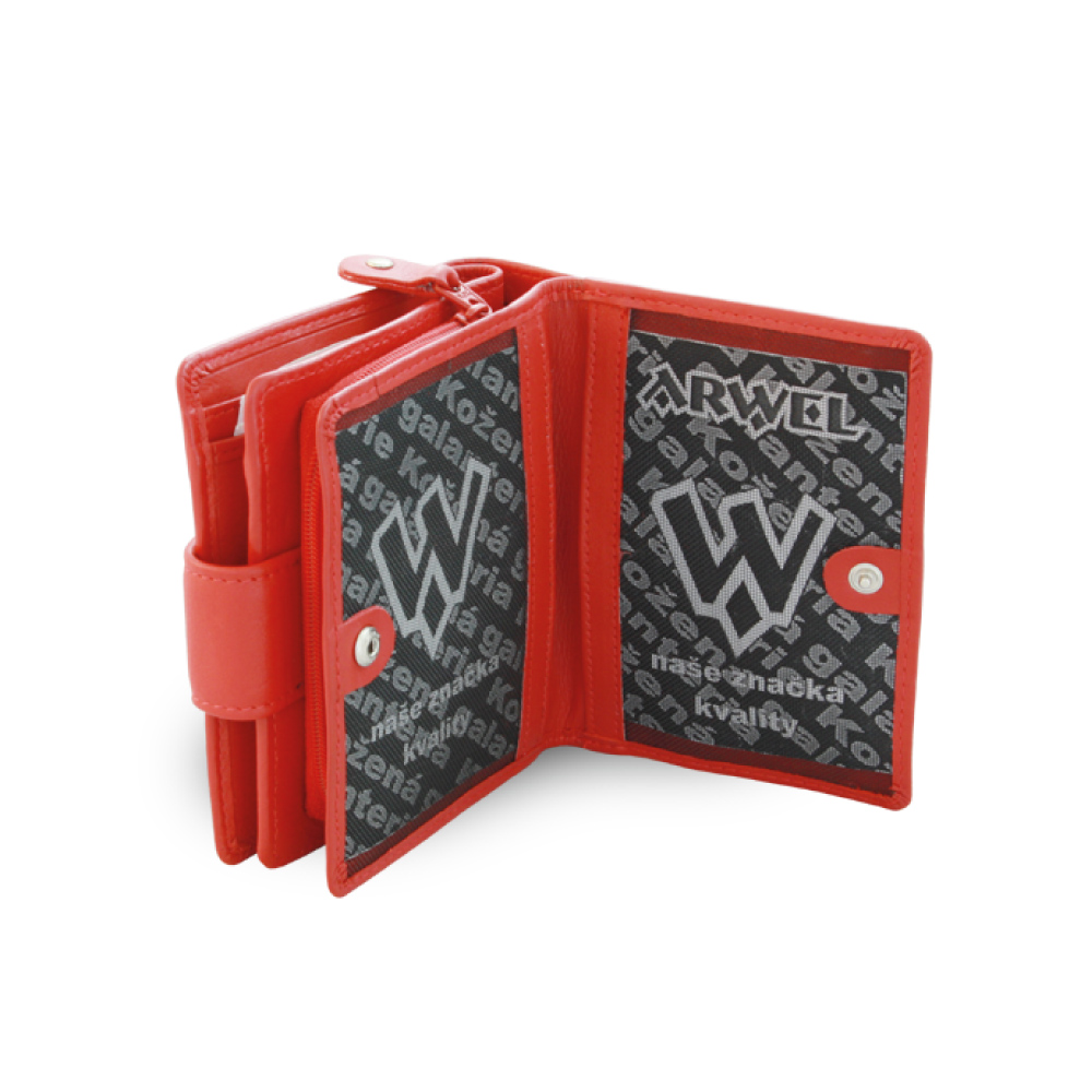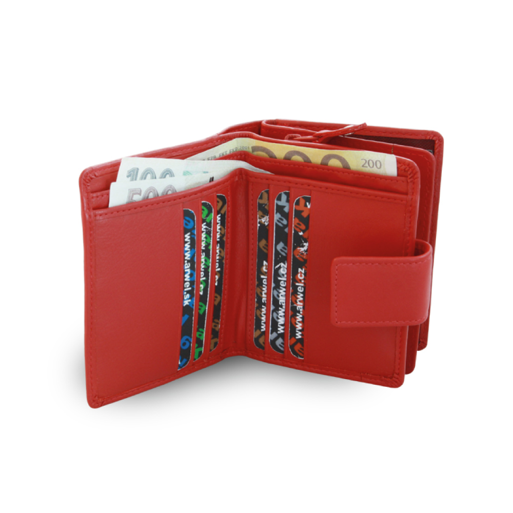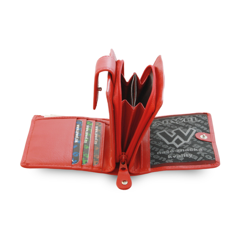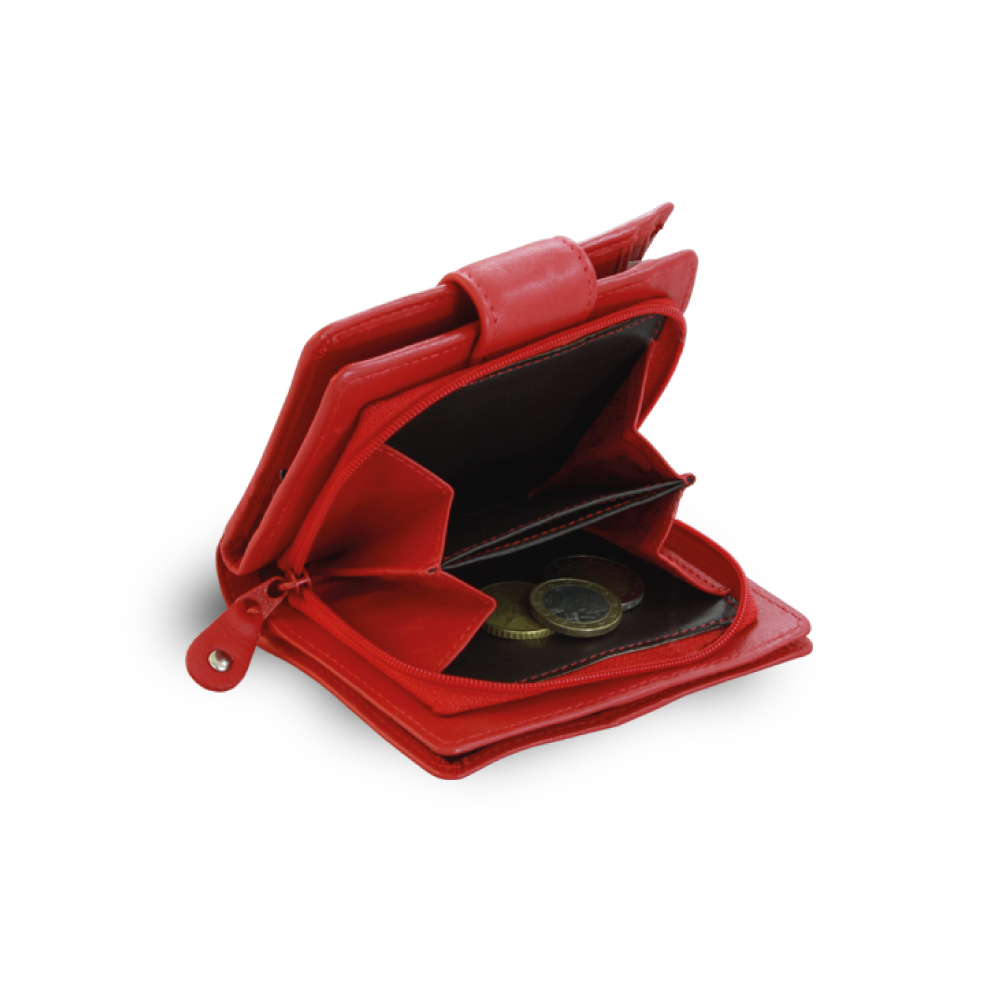 Peňaženka dámska kožená so zápinkou - červená rozmer - 9 x 11,5 cm, koža, materiál NAPPA , 2 priehradky na bankovky, 6 vreciek na kreditné karty, 2 vnútorné vrecka, 2 priehľadné vrecka na doklady, pod zipsovým uzáverom uprostred peňaženky sú dve v