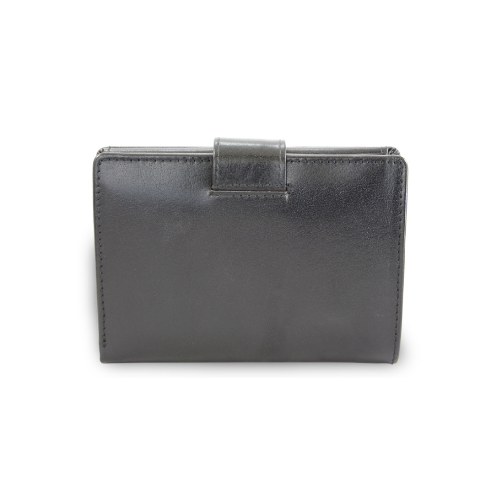 Čierna dámska kožená peňaženka s ozdobnou klopňou