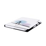 Súčasťou notesu je pútko pre pero a kovová propiska.