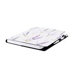 Diár obsahuje: okrúhle odtrhávacie rožky, bielu záložku a pero