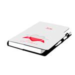 Diár obsahuje: okrúhle odtrhávcie rožky, bielu záložku a pero