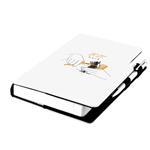 Diár obsahuje: okrúhle odtrhávacie rožky, bielu záložku a pero