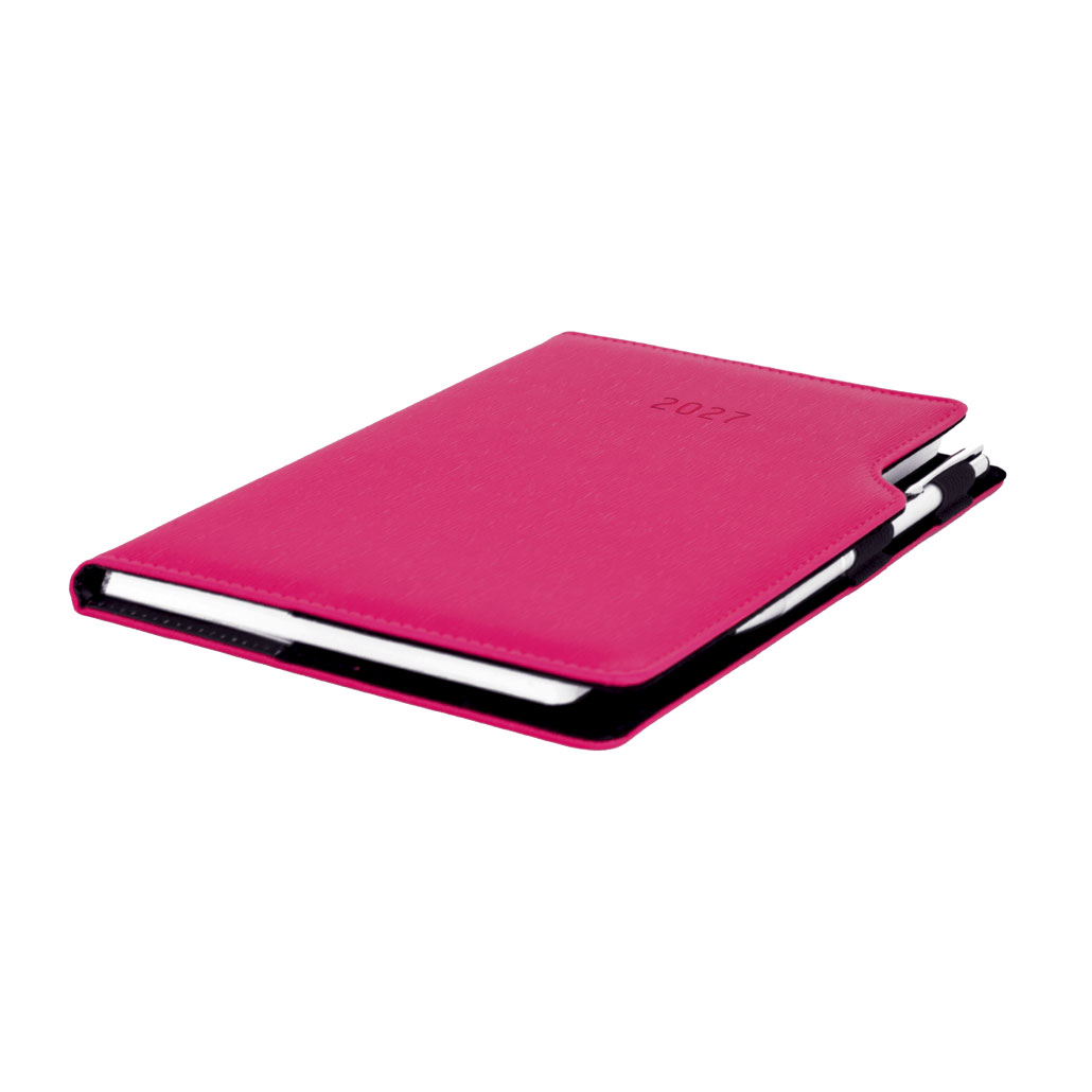 Diár obsahuje: okrúhle odtrhávcie rožky, bielu záložku a pero