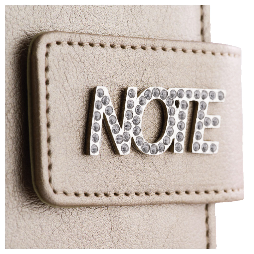 Šperk Note je vyrobený z niklu a v ňom sú vsadené kryštáliky.