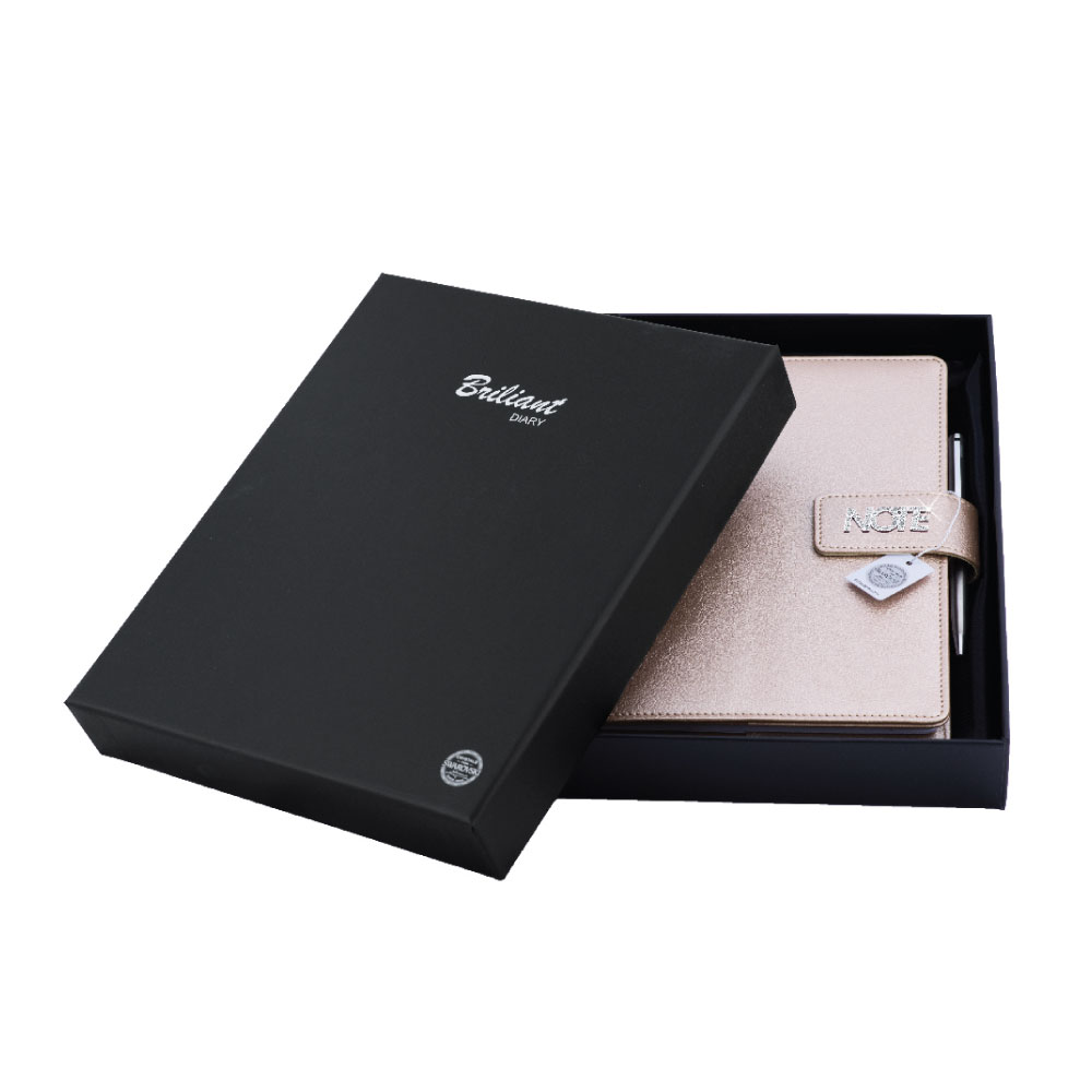 Notes je balený v darčekovej krabičke vystlanej saténom.