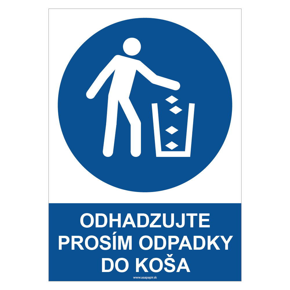 RBT-P1A4-267-SK | Odhadzujte, prosím, odpadky do koša - bezpečnostná tabuľka, plast 0,5 mm - A4 | Plastová tabulka 0,5 mm | A4 (cca 210x297) | AAApapir |