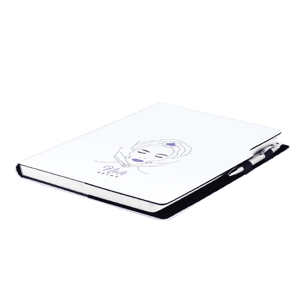 Súčasťou notesu je pútko pre pero a kovová propiska.