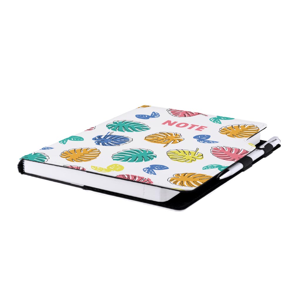 Súčasťou notesu je pútko pre pero a kovová propiska.