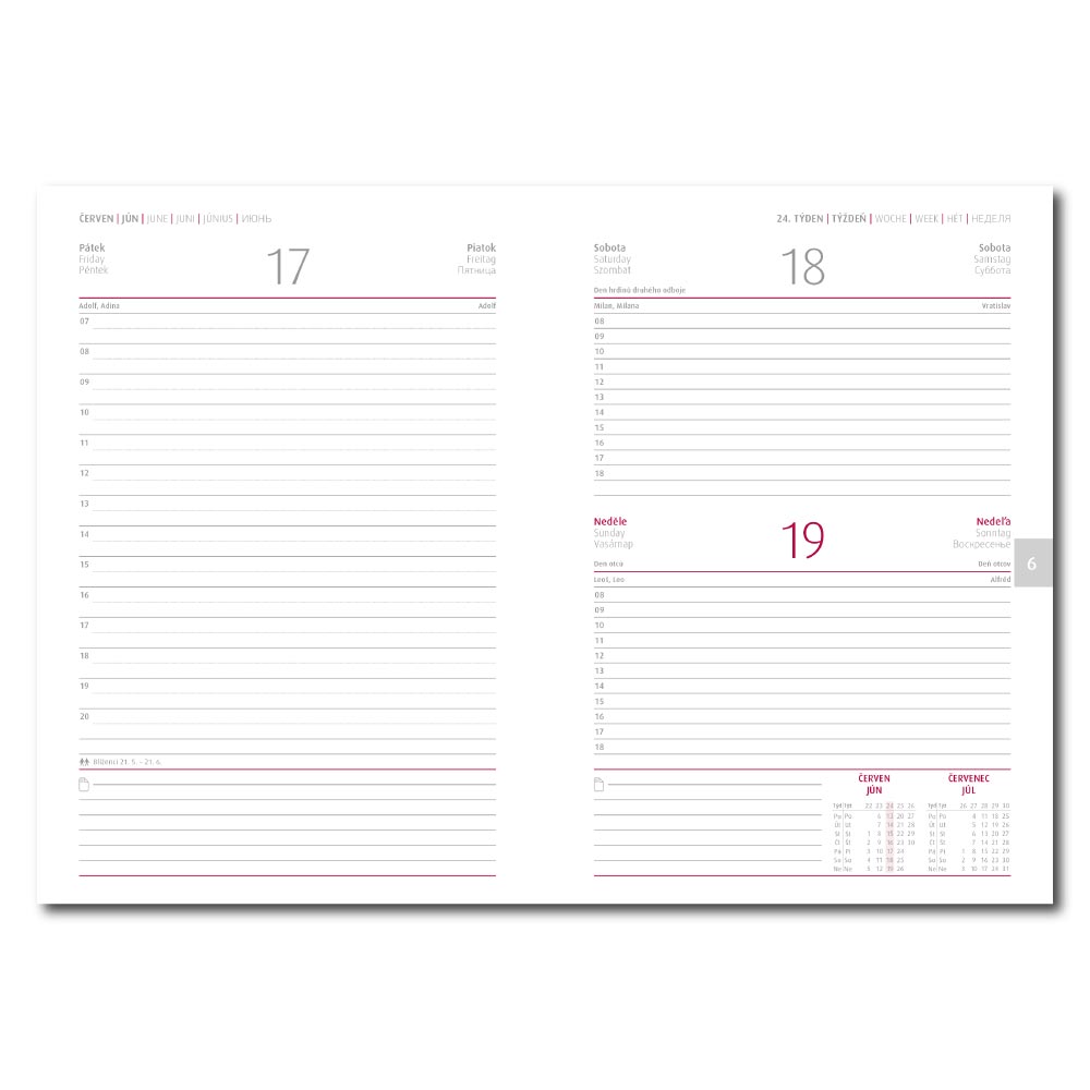 Diár obsahuje: miesto pre osobné údaje, mesačné plánovanie 2022 a 2023,
