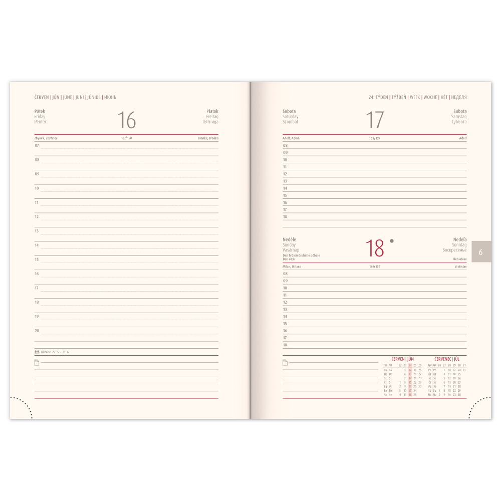 Kalendárium: 6jazyčné denné od decembra 2022 (CZ, SK, GB, DE, HU, RU)