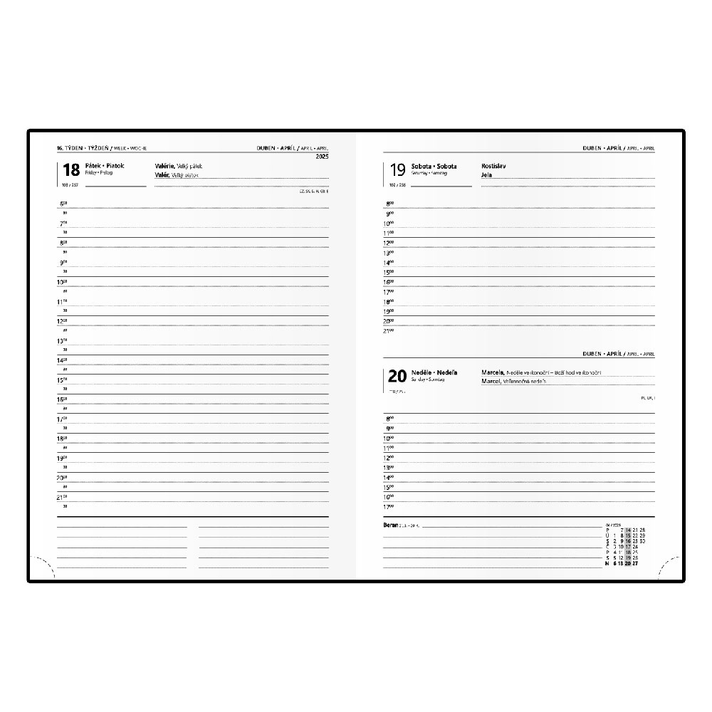 Denný diár 2025 Adam Vivella extra B6 - tmavo zelená - Paprade