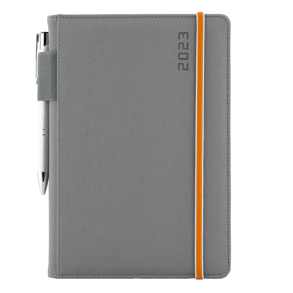 Diár AMOS denný A5 2022 český - sivá/oranžová gumička