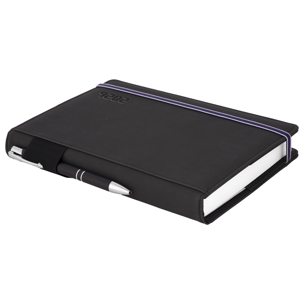 Diár AMOS denný A5 2026 polský - čierna/modrá gumička