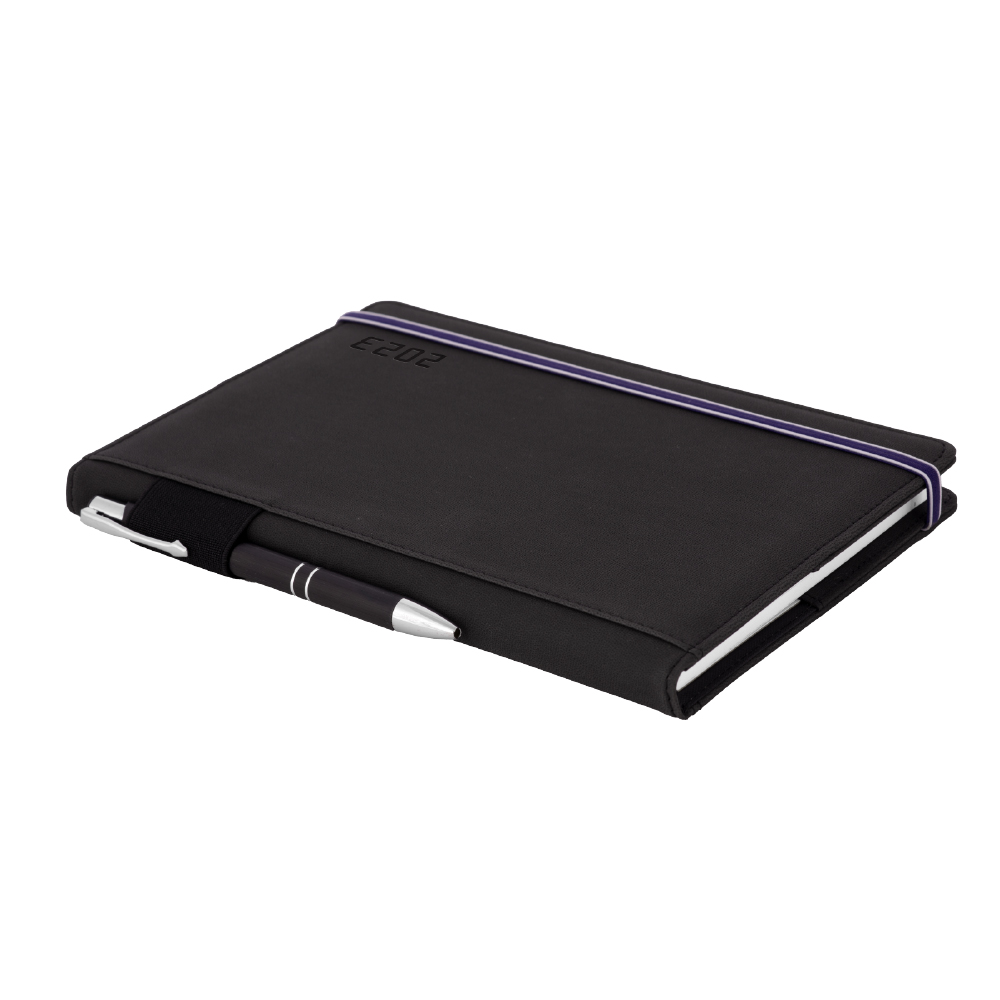 Diár AMOS týždenný A5 2023 polský - čierna/modrá gumička