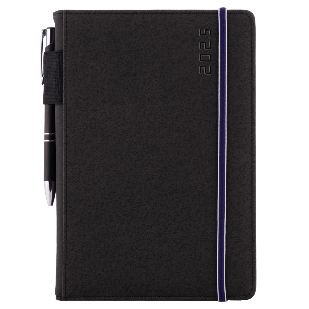 Diár AMOS týždenný A5 2025 polský - čierna/modrá gumička