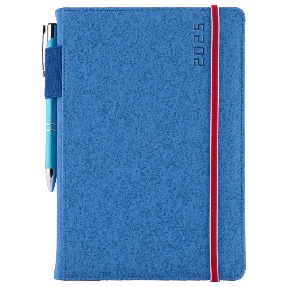 Diár AMOS týždenný A5 2025 polský - modrá/červená gumička