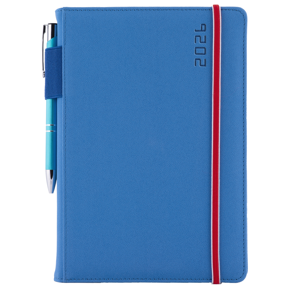 Diár AMOS týždenný A5 2026 - modrá/červená gumička
