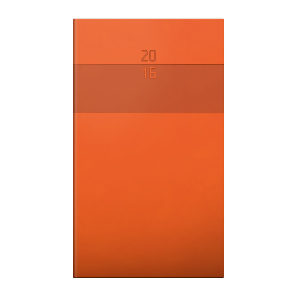 Diár Aprint týždenný vreckový A5 2016 - oranžová rozmer - 9 x 15,5 cm kalendárium - týždenné poťahový materiál - koženka počet strán - 136 papier - 60 g/m2 väzba - tuhá knižná záložka - ano, barva bloku - biela informačné stránky - 4 jazyčné kalendáriu