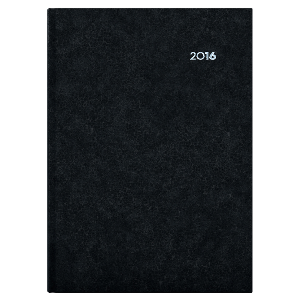 Diár Balacron denný A5 2016 - čierna rozmer - 13 x 21 cm kalendárium - denné poťahový materiál - napodobenina plátna, razba cez fóliu počet strán - 360 papier - 70 g/m2 väzba - tuhá knižná záložka - ano, barva bloku - biela informačné stránky - 4 jazy