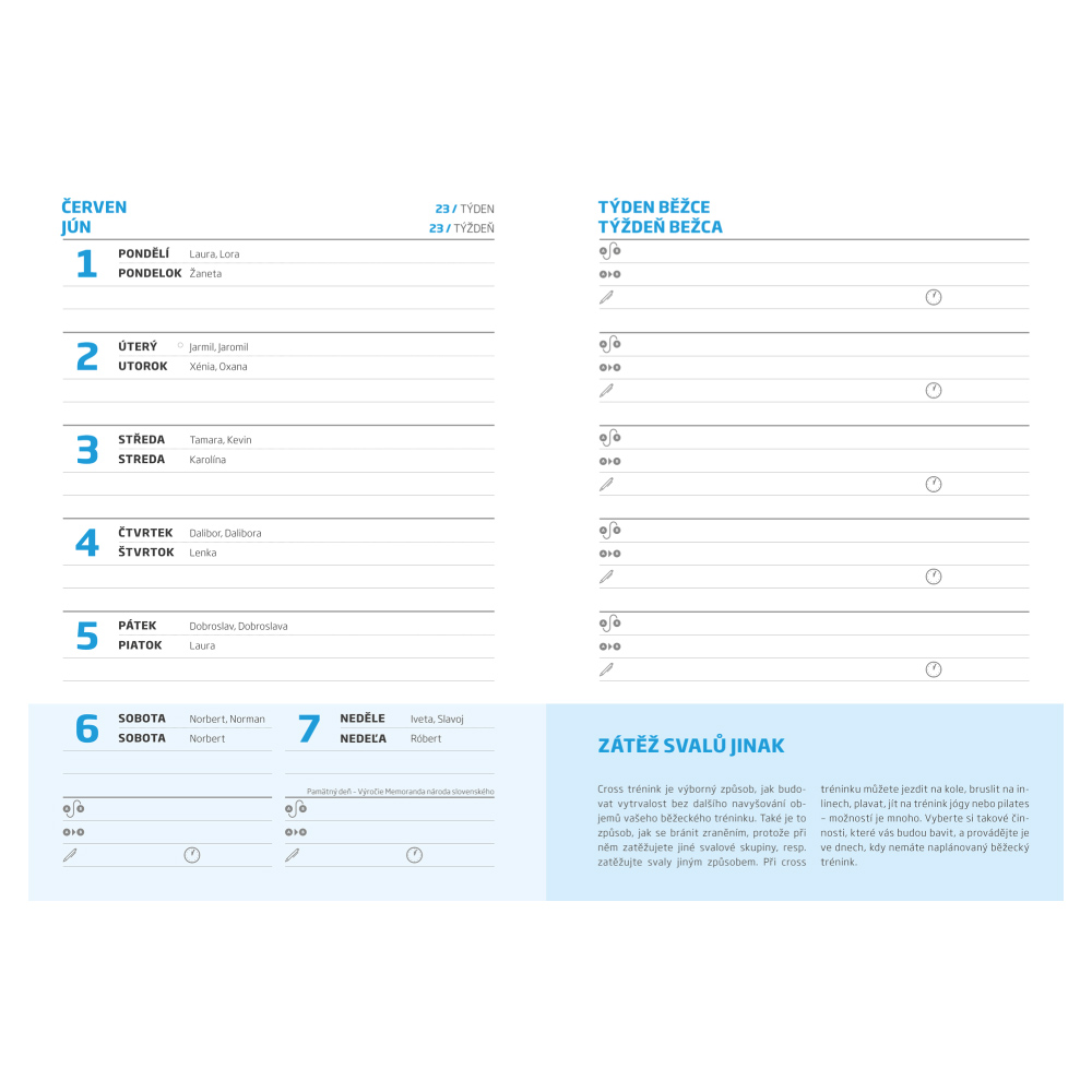 Súčasťou  diára - tipy na behanie, tréningové plány,