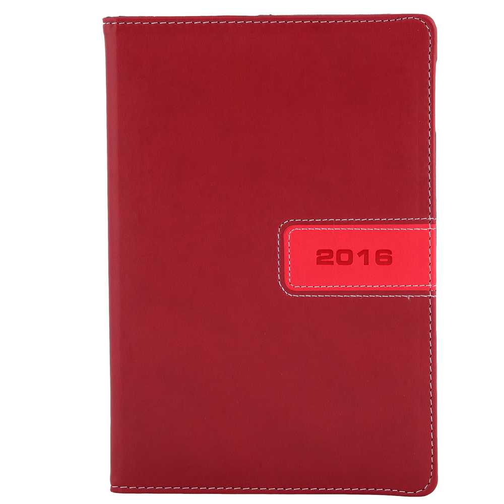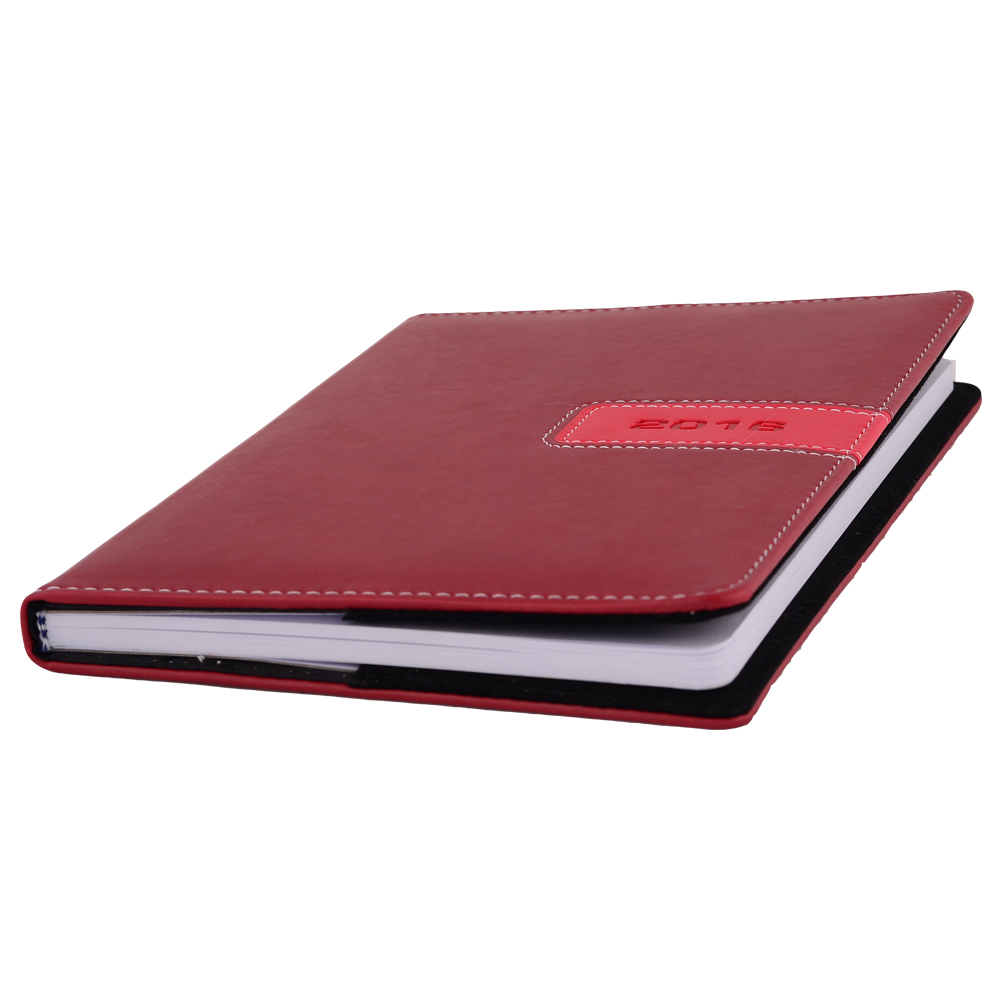 Diár český denný A5 Riga - červená rozmer bloku 148 x 210 mm, poťahový materiál - koženka penová výplň dosky - diára, počet strán - 360 kalendárium - denné české a slovenské jazyky CZ, SK, EN, DE, RU, väzba - šitá V8 (tkaná niť) barva bloku - biela, kulat