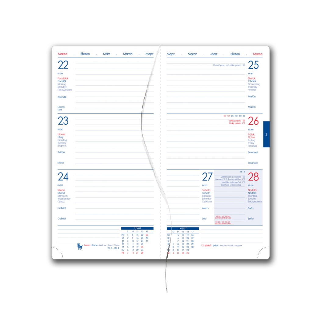 plánovací kalendár 2027, ročný plánovací kalendár SK a CZ,