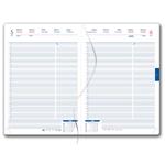 Diár obsahuje: okrúhle odtrhávcie rožky, bielu záložku a pero