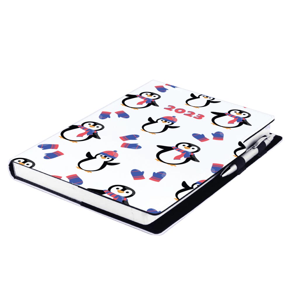 Diár obsahuje: okrúhle odtrhávcie rožky, bielu záložku a pero