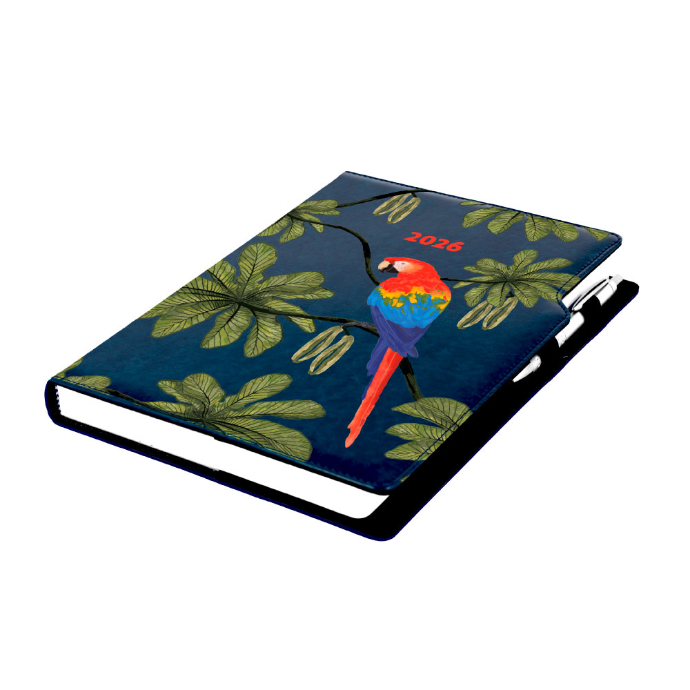 Diár DESIGN denný A4 2026 - modrá - papagáj