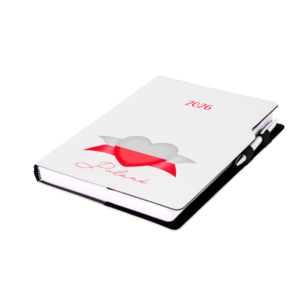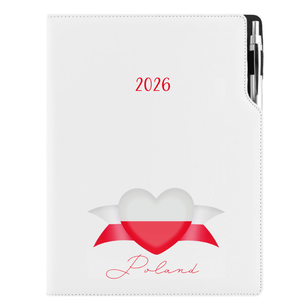 Diár DESIGN denný A4 2026 poľský - biela - Poľsko - vlajka