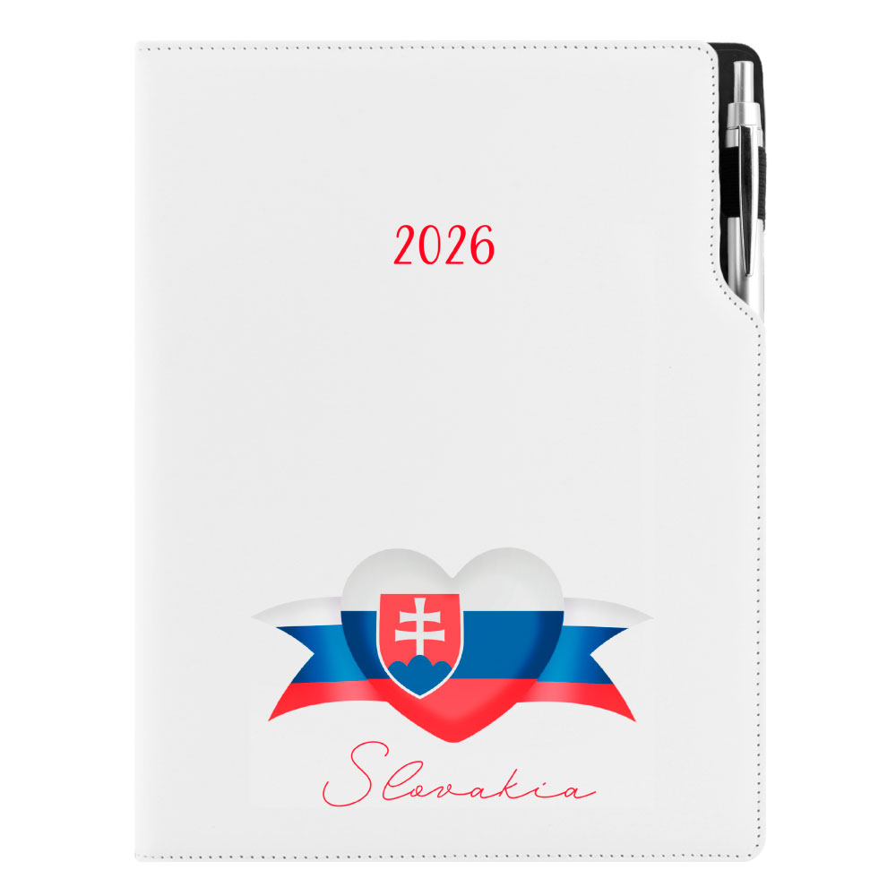 Diár DESIGN denný A4 2026 poľský - biela - Slovensko - vlajka