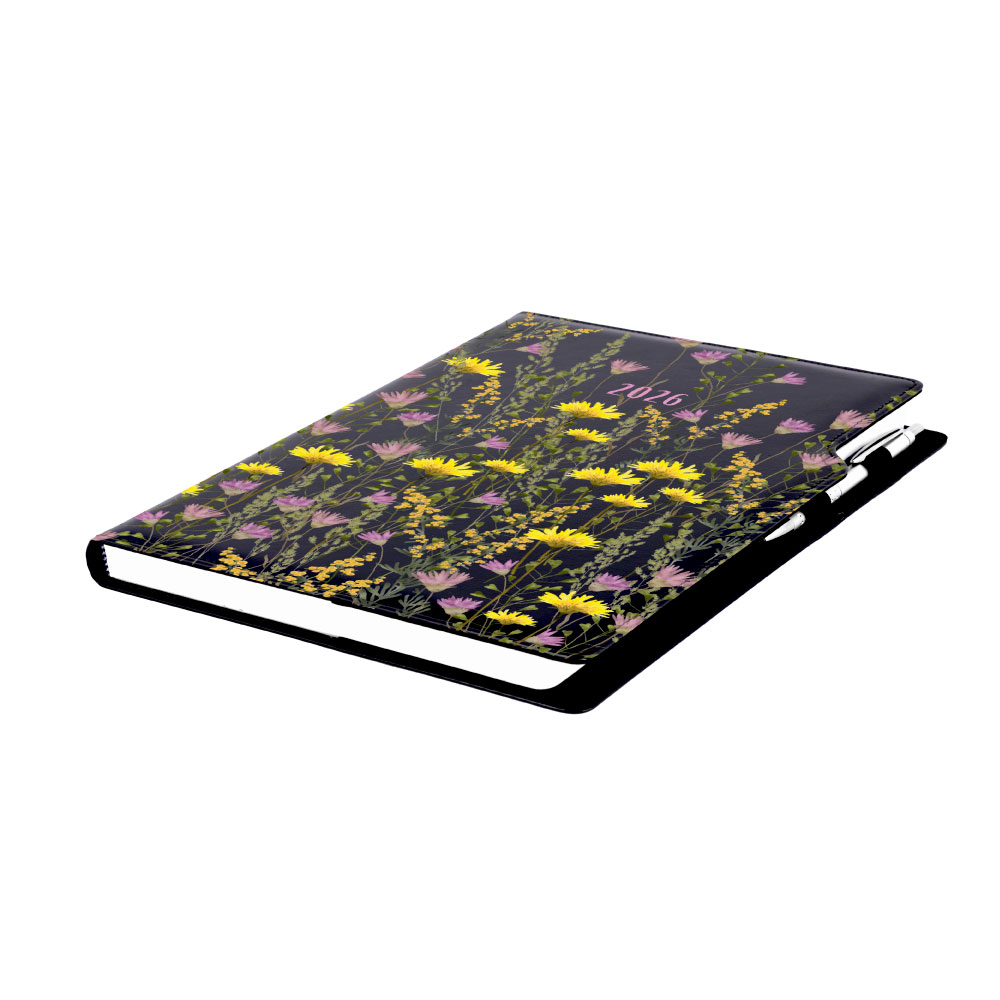 Diár DESIGN denný A4 2026 poľský - čierna - lúka