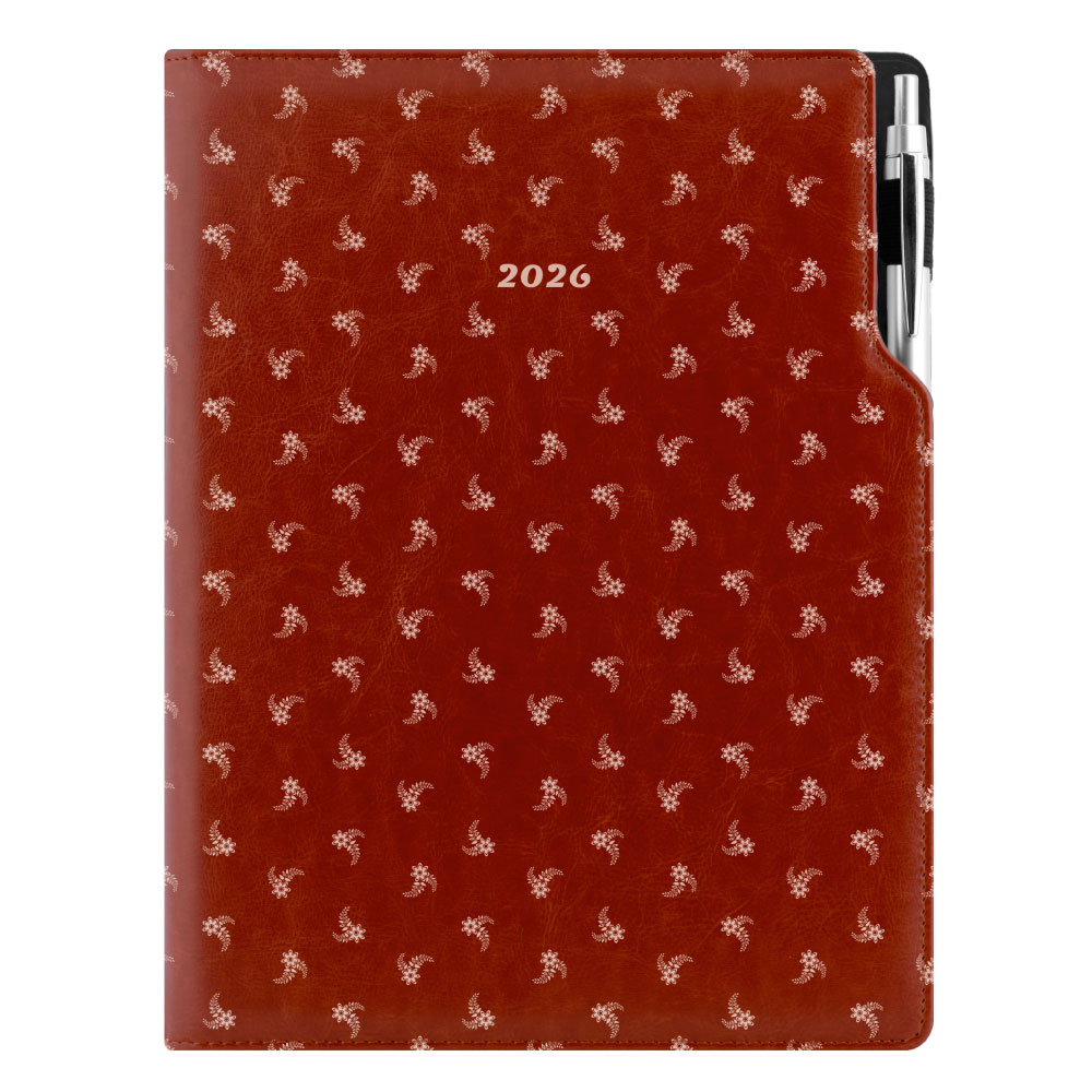Diár DESIGN denný A4 2026 poľský - hnedá - biely kvet
