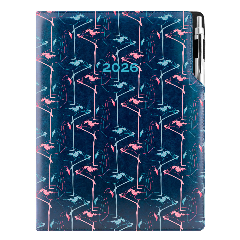 Diár DESIGN denný A4 2026 poľský - modrá - Flamingo