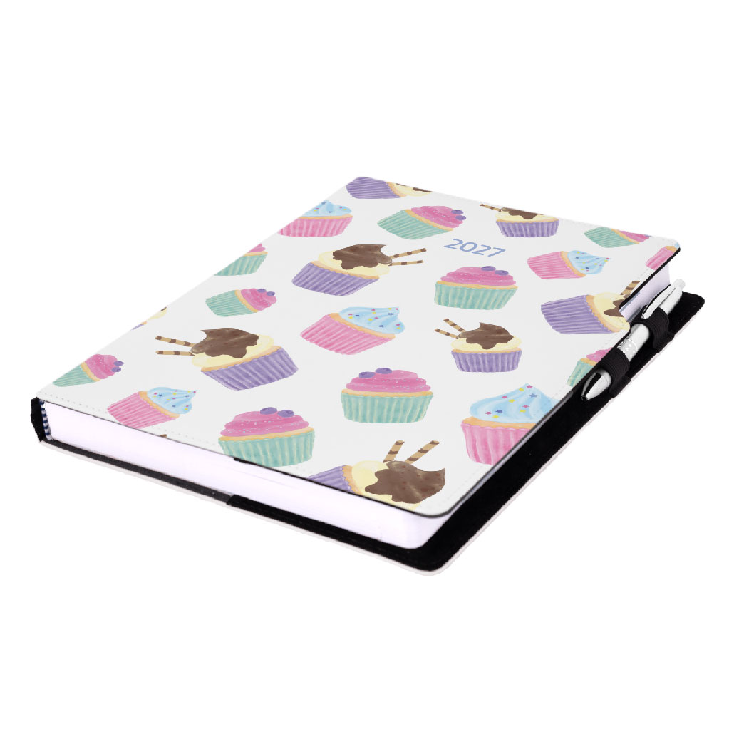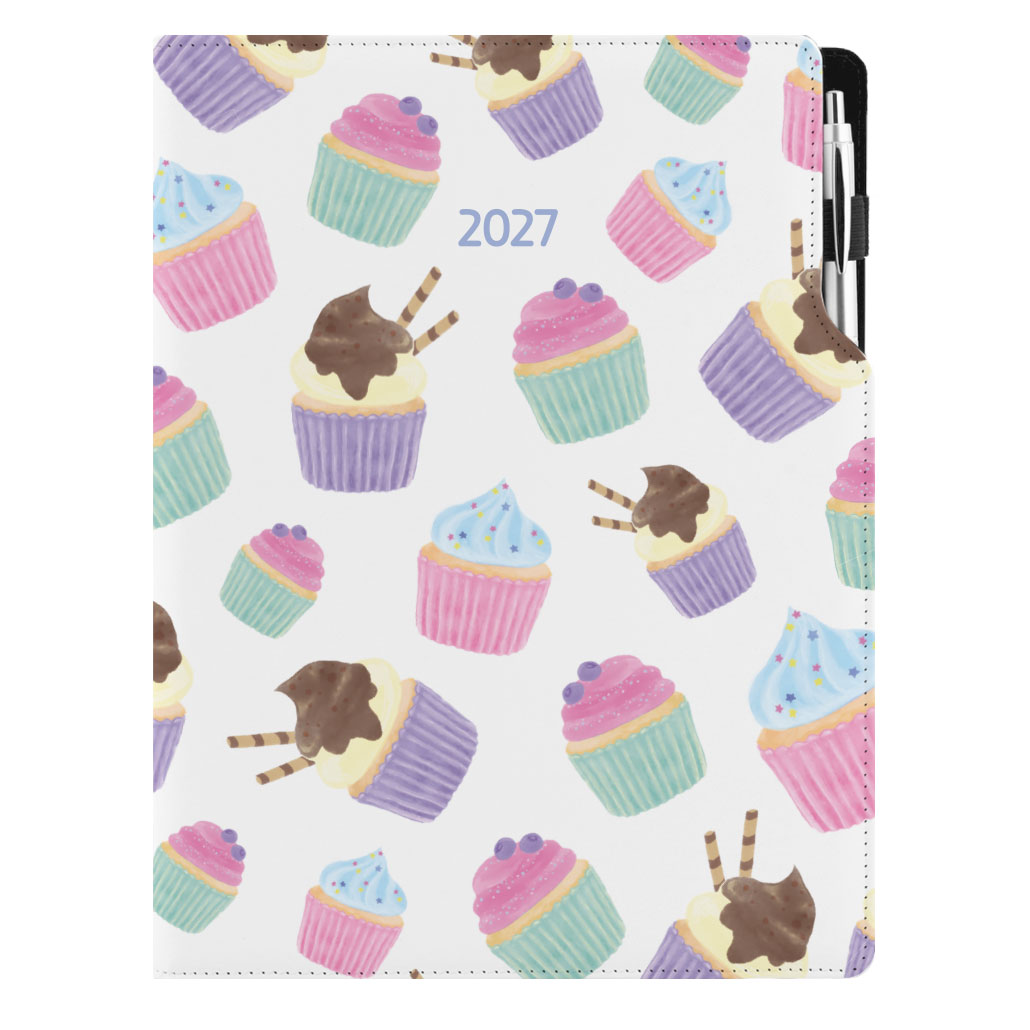 Diár obsahuje: okrúhle odtrhávcie rožky, bielu záložku a pero