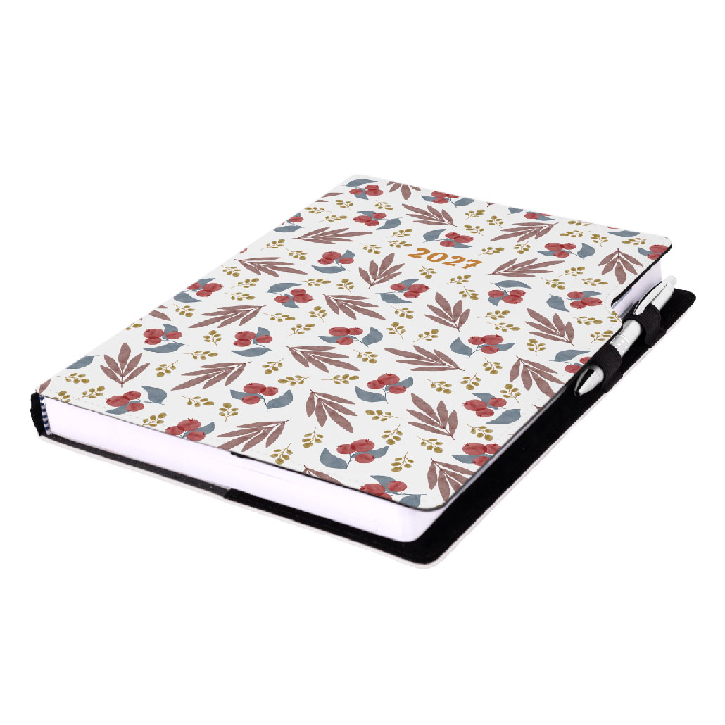 Diár obsahuje: okrúhle odtrhávcie rožky, bielu záložku a pero