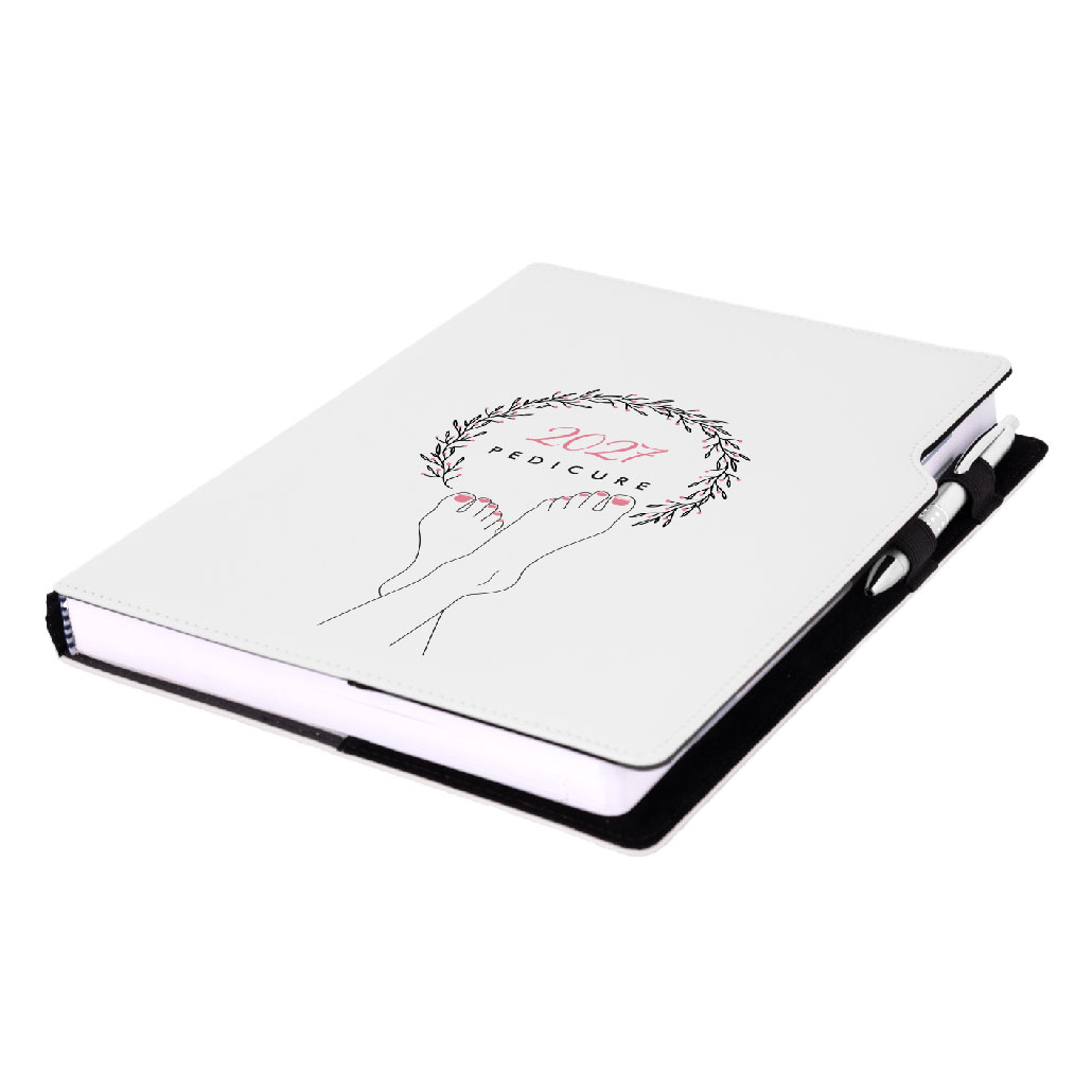 Diár obsahuje: okrúhle odtrhávcie rožky, bielu záložku a pero