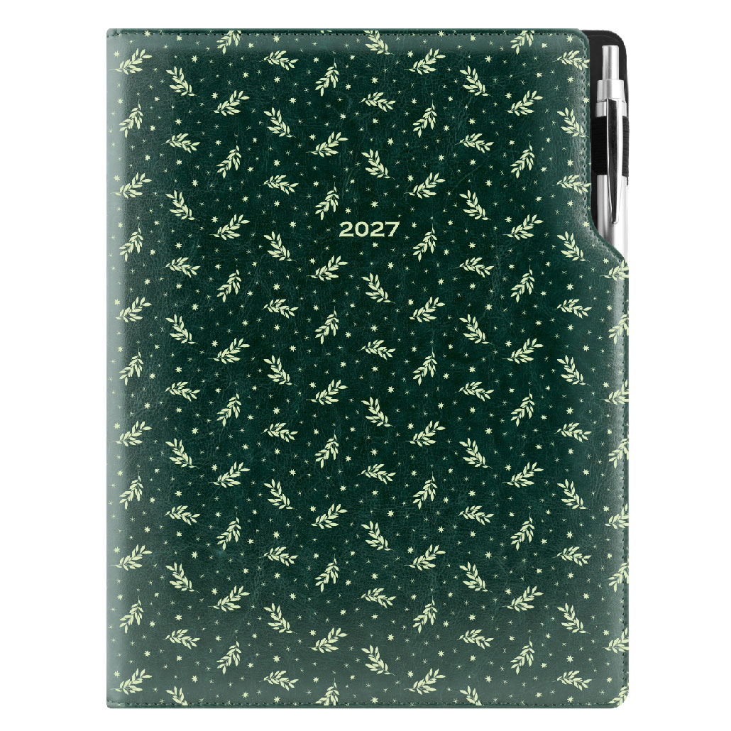 Diár DESIGN denný A4 2027 poľský - zelená - vetvičky