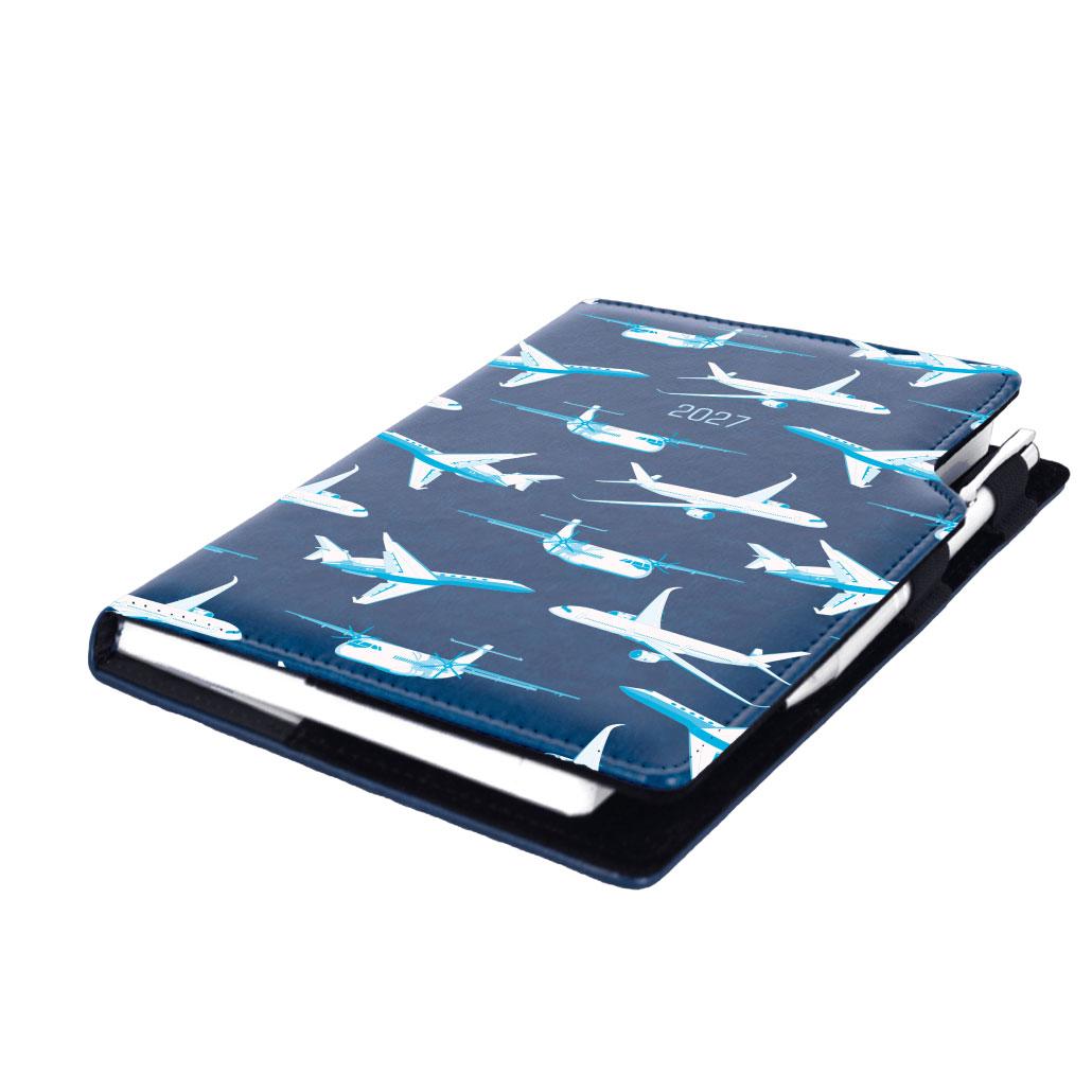Diár DESIGN denný A5 2027 polský - modrá - lietadlá