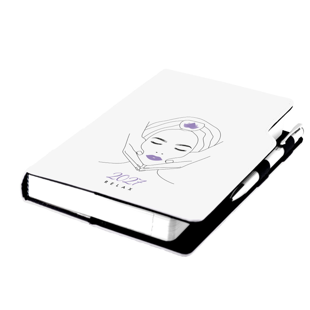 Diár obsahuje: okrúhle odtrhávacie rožky, bielu záložku a pero