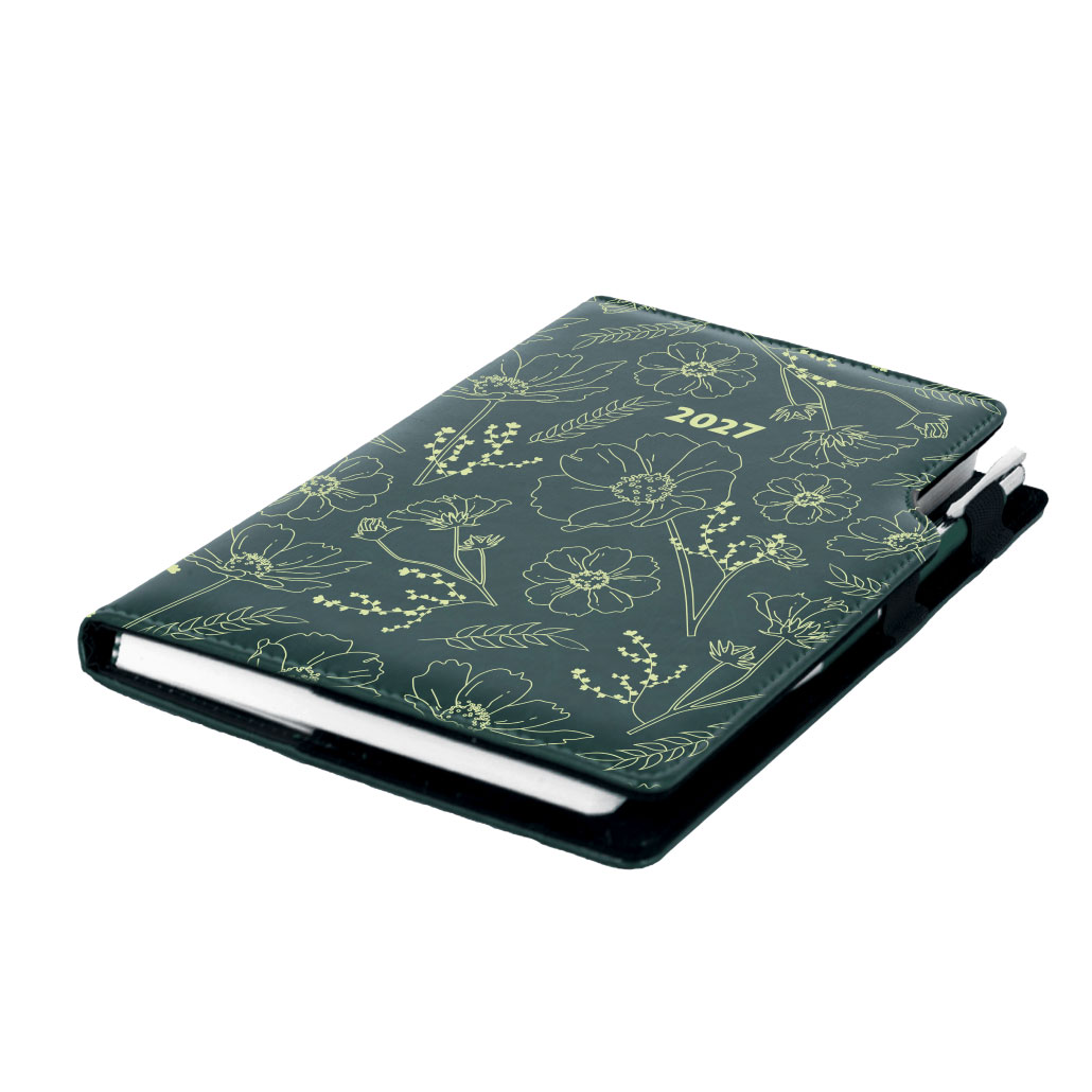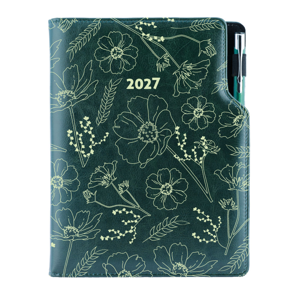 Diár DESIGN denný A5 2027 slovenský - zelená - Kvety