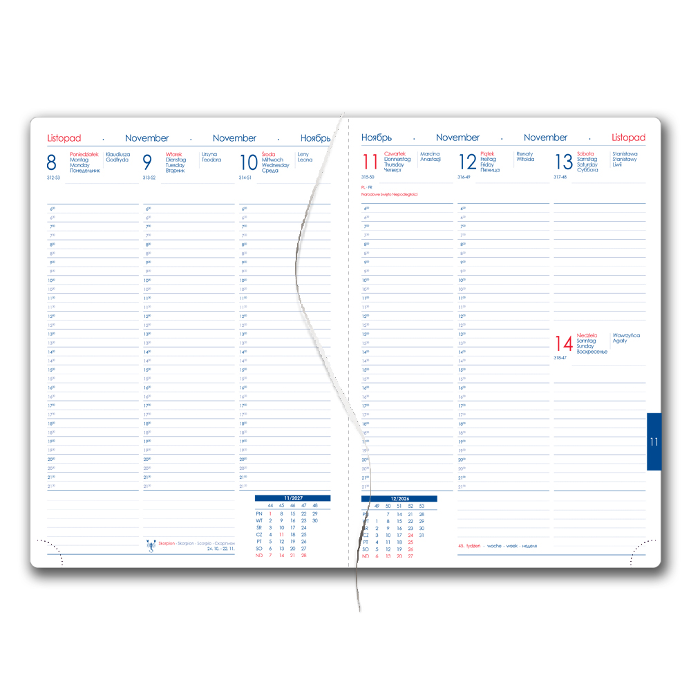Obsah kalendária: prehľadný kalendár, ročný plánovací kalendár 2027,