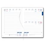Diár obsahuje: okrúhle odtrhávacie rožky, bielu záložku a pero