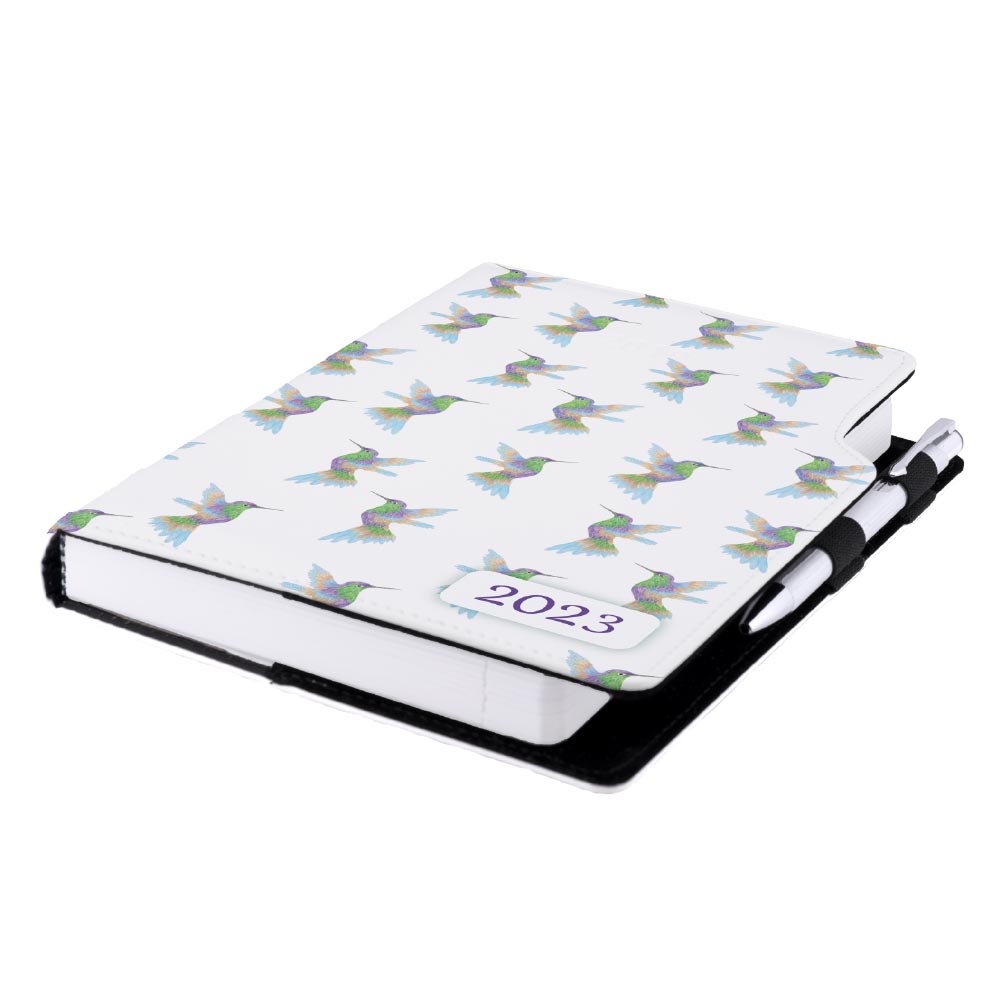 Diár obsahuje: okrúhle odtrhávcie rožky, bielu záložku a pero