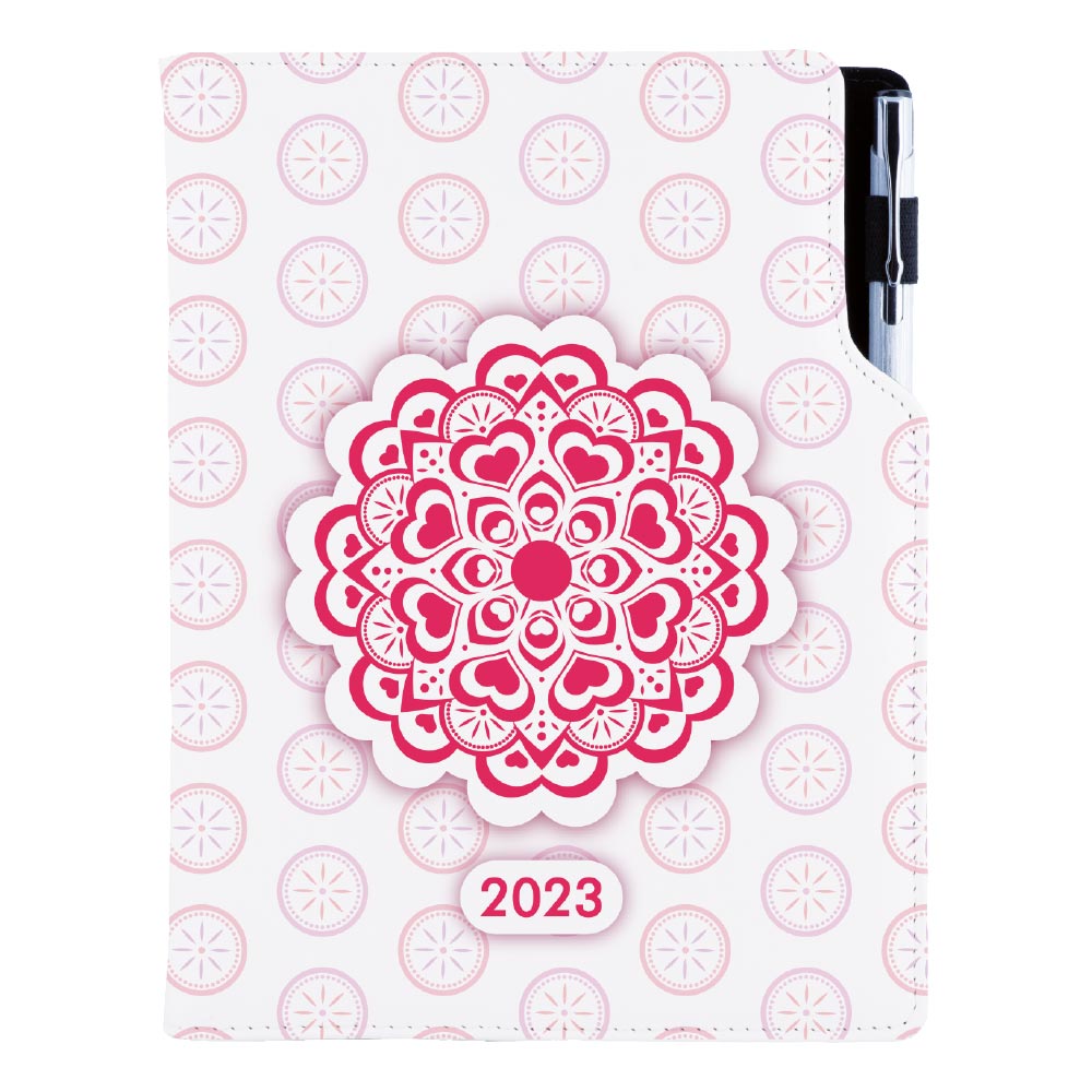 Diár obsahuje: okrúhle odtrhávcie rožky, bielu záložku a pero