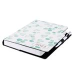 Diár obsahuje: okrúhle odtrhávcie rožky, bielu záložku a pero